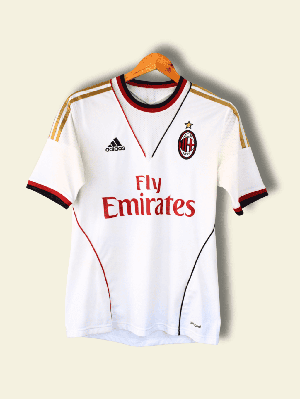 The 2013–14 AC Milan away kit, produced by adidas, was sleek and understated. Featuring a clean white base with red and black detailing, including subtle striping and a modern cut, the shirt honored Milan’s European tradition while embracing contemporary styling. It became closely associated with a season of nostalgia, return, and transition.
