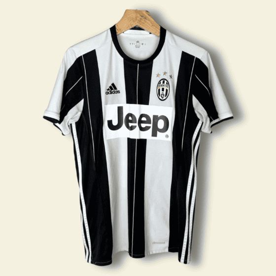 The 2017–18 Juventus third kit, produced by adidas, became one of the most distinctive kits in modern football. Featuring a black base with a bold neon-yellow lightning bolt graphic across the chest, it broke radically from tradition. Designed to reflect speed, energy, and modernity, the shirt was polarizing at launch but has since become a cult favorite and a highly collectible vintage football shirt from the late-2010s era.