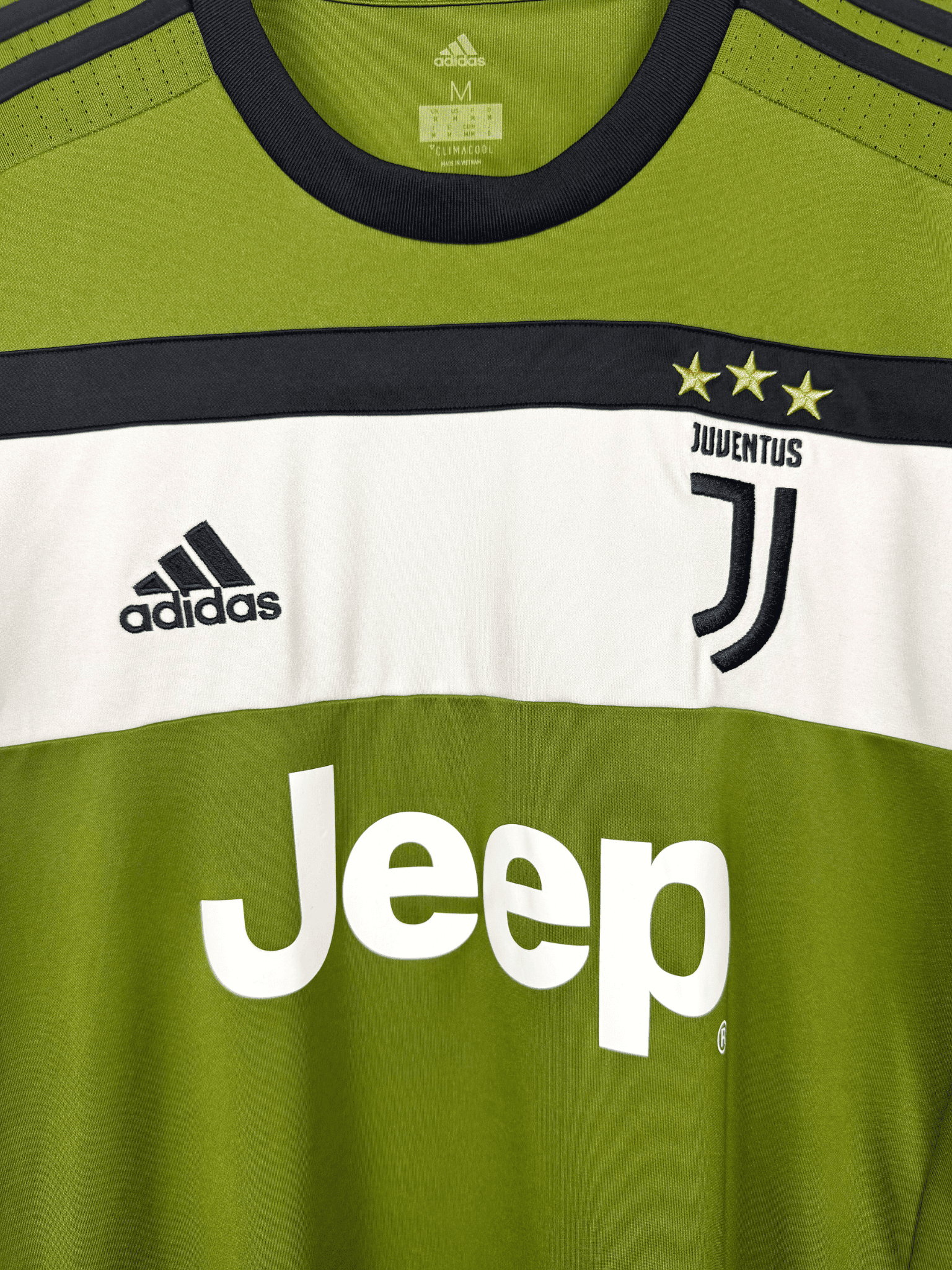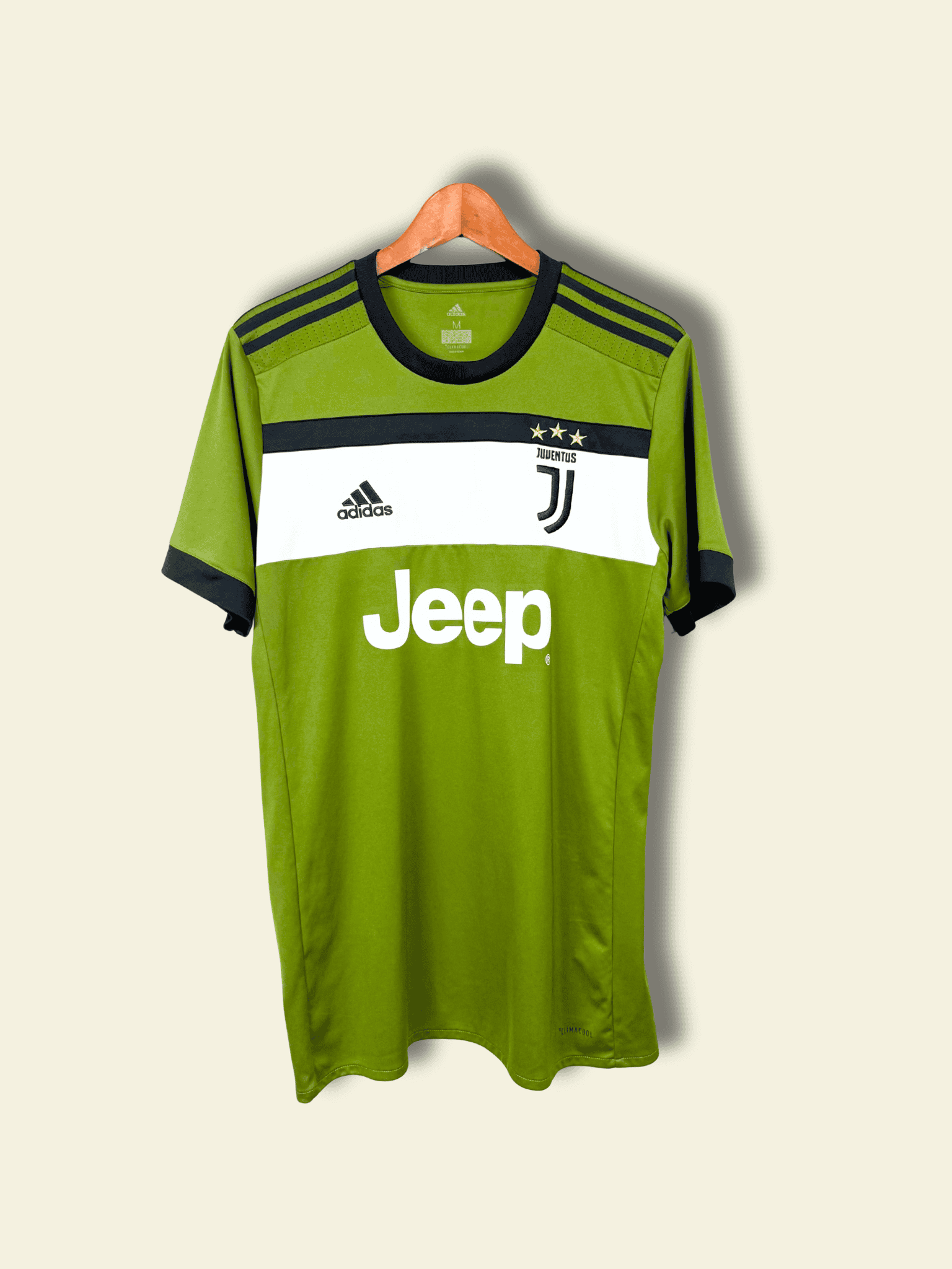 The 2017–18 Juventus third kit, produced by adidas, became one of the most distinctive kits in modern football. Featuring a black base with a bold neon-yellow lightning bolt graphic across the chest, it broke radically from tradition. Designed to reflect speed, energy, and modernity, the shirt was polarizing at launch but has since become a cult favorite and a highly collectible vintage football shirt from the late-2010s era.