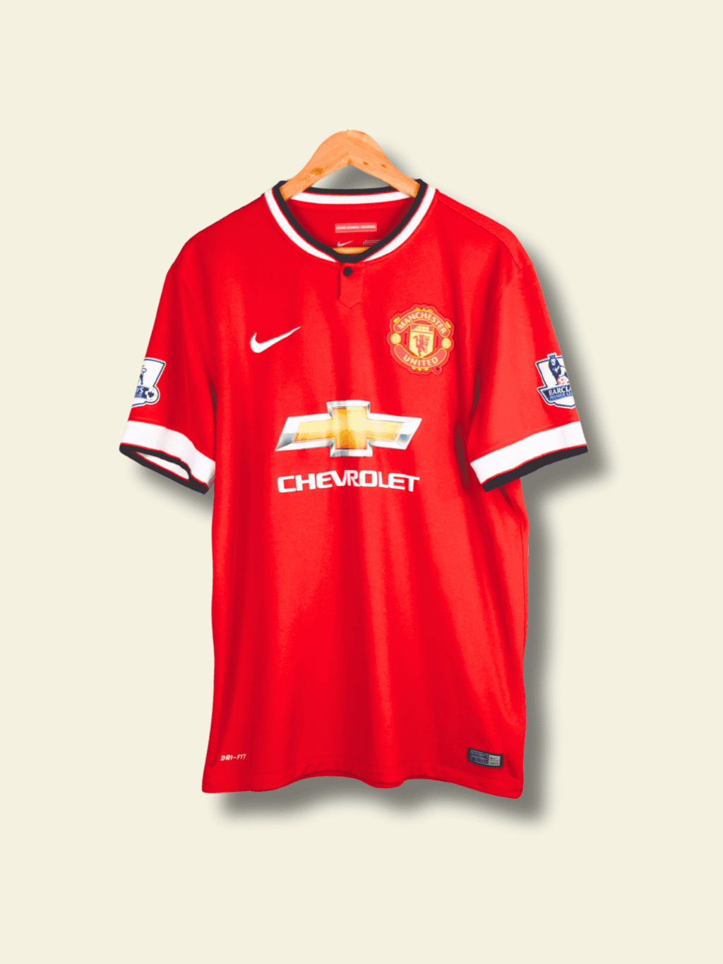 The 2015–16 Manchester United home kit, produced by adidas, was historically significant: it marked the brand’s return after a 13-year absence. The shirt featured a classic red body, a white V-neck collar, and trademark white three-stripes running across the shoulders. Subtle geometric textures on the fabric paid homage to 1980s adidas templates, blending heritage with modern performance. This kit has become a modern classic — instantly recognizable and symbolically tied to a new phase in United’s identity.