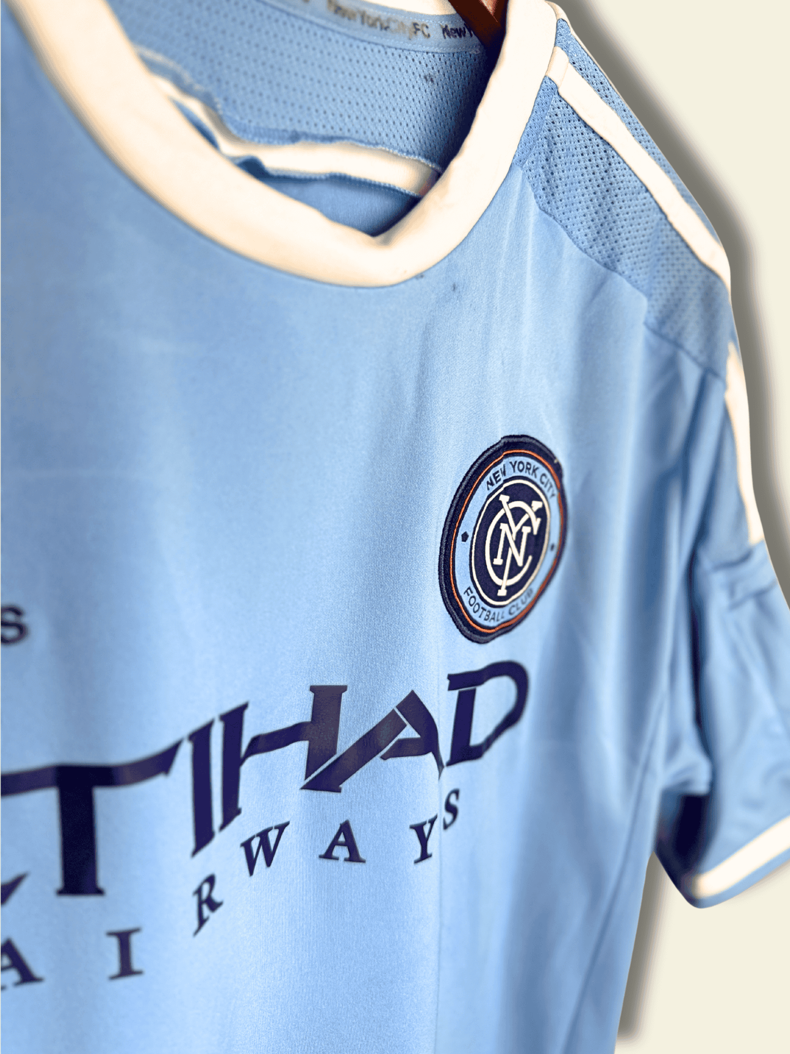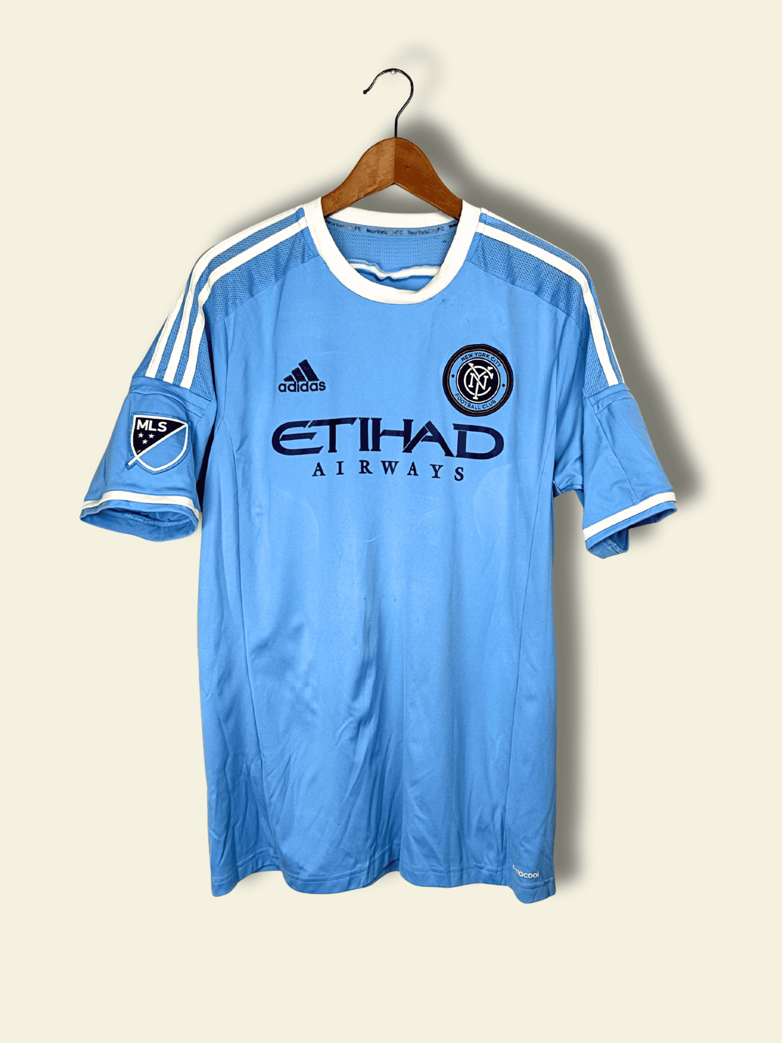 The 2015 NYCFC home kit, produced by adidas, immediately became iconic. Featuring a sky-blue base inspired by Manchester City, navy trim, and the Etihad Airways sponsor, the shirt symbolized NYCFC’s global ambitions. Clean, modern, and instantly recognizable, it remains one of the most collectible kits from MLS expansion history.
