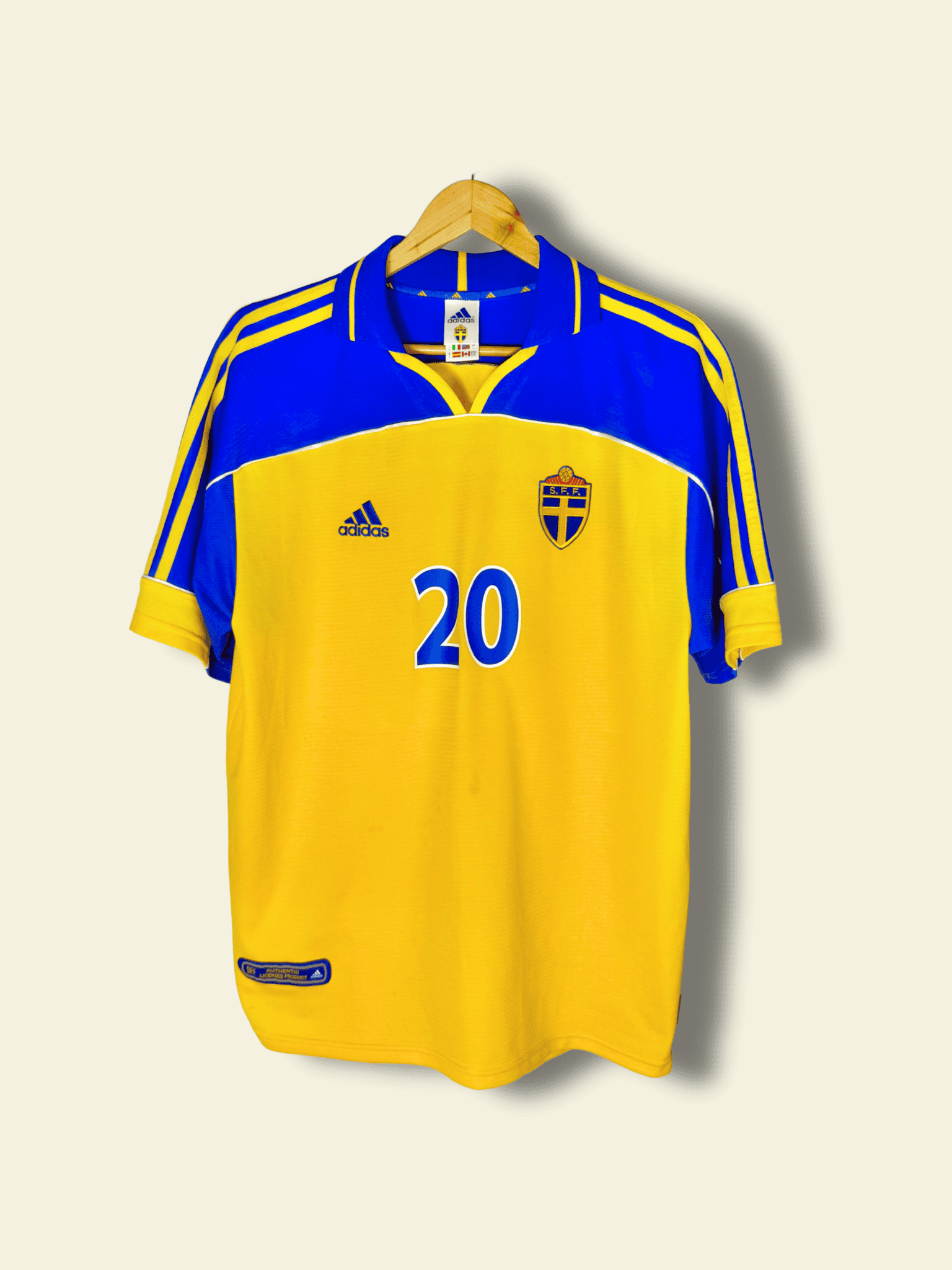 He wore Sweden’s classic yellow and blue home kit during this period — one of the last produced by Umbro before the switch to Adidas.