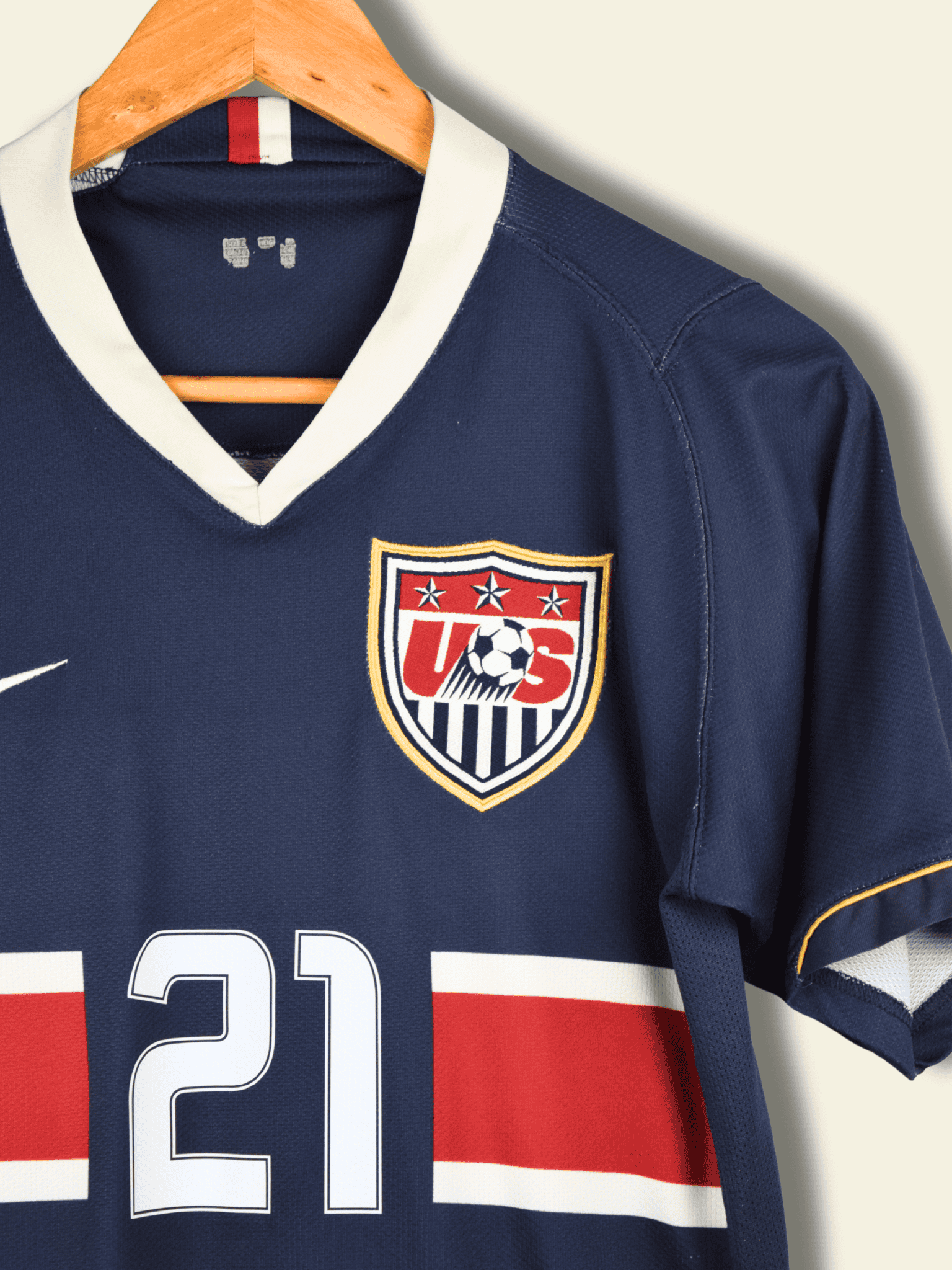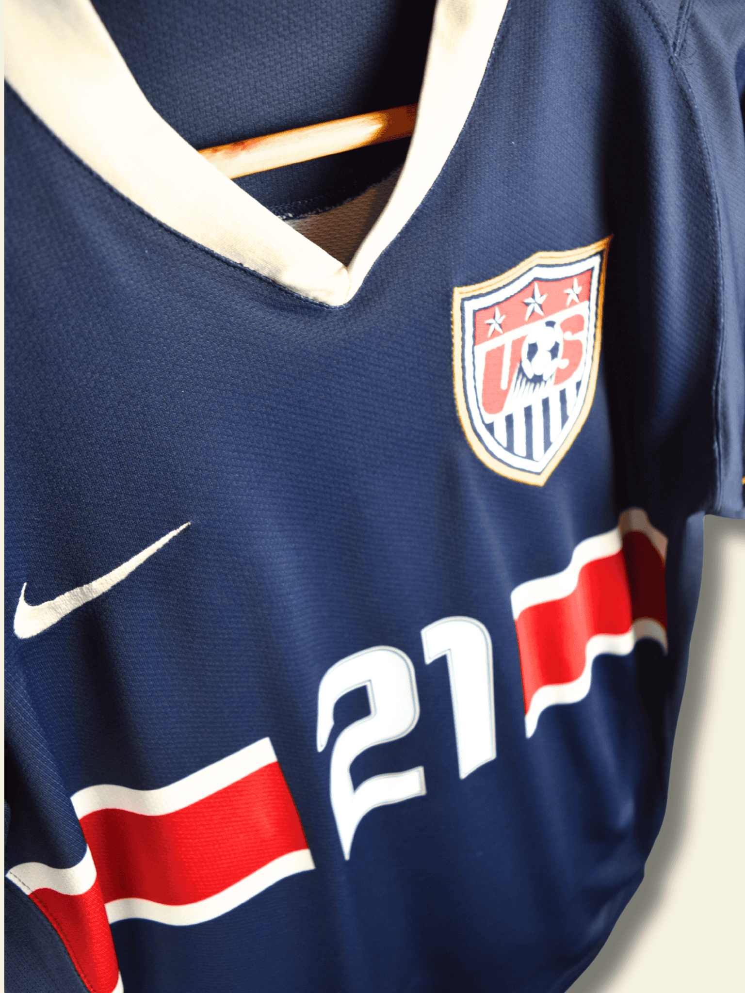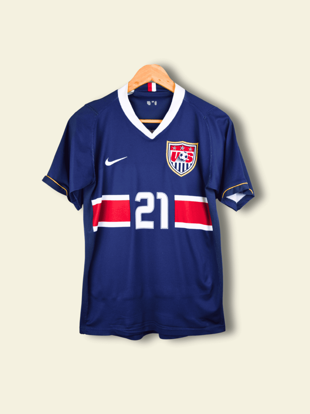 Kit: The 2006 USA away jersey, made by Nike, featured a navy blue base with a white vertical center stripe, trimmed in red. The design symbolized unity and strength, and it remains one of the most recognizable early-2000s U.S. kits.